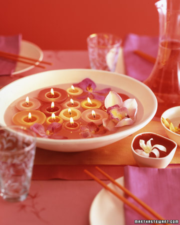 Najlepší spôsob ako podčiaknúť romantickú atmosféru sú staré známe sviečky. Ak chcete vymyslieť ničo nové skúste plávajúce lodičky. Podčiarknú atmosféru a budú zaujímavé.